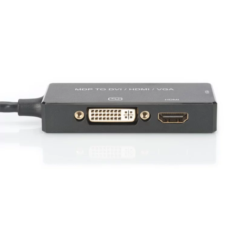 Kabel miniDP/HDMI+DVI-I+VGA M/Ż czarny 0,20mDisplayport 4K 30Hz UHD / 1080p 60Hz FHD