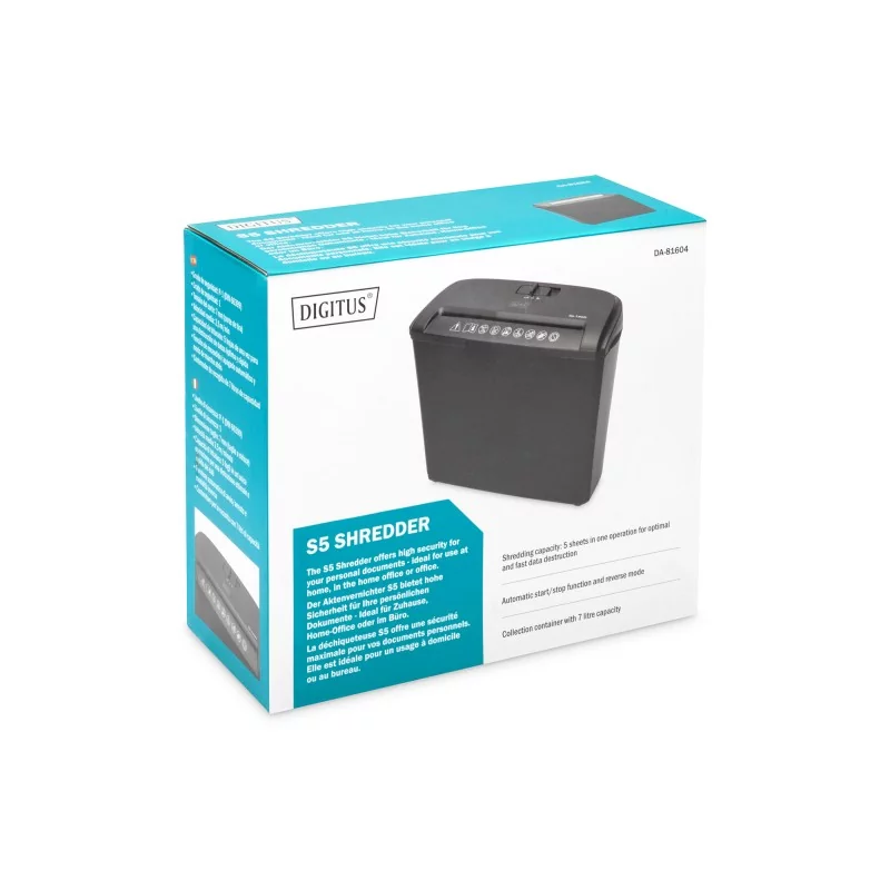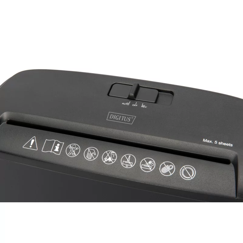- Wydajność niszczarki: 5 arkuszy w jednej operacji dla optymalnego i szybkiego niszczenia danych