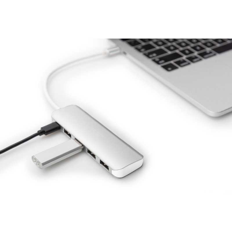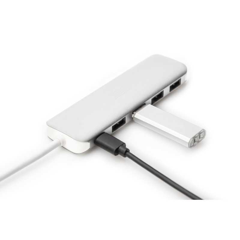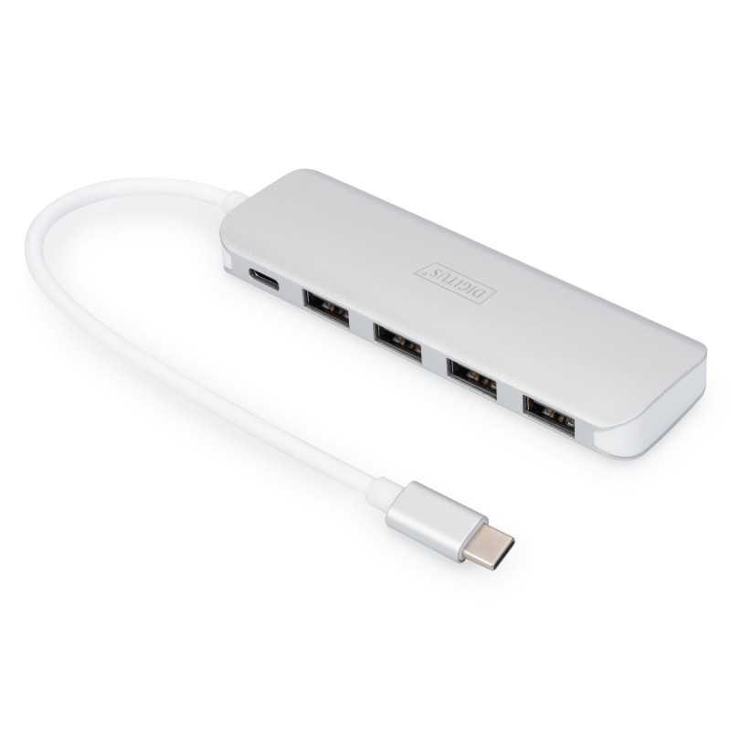 HUB 4-portowy USB 3.0 SuperSpeed z Typ C PD aktywny, aluminium DA-70242-1