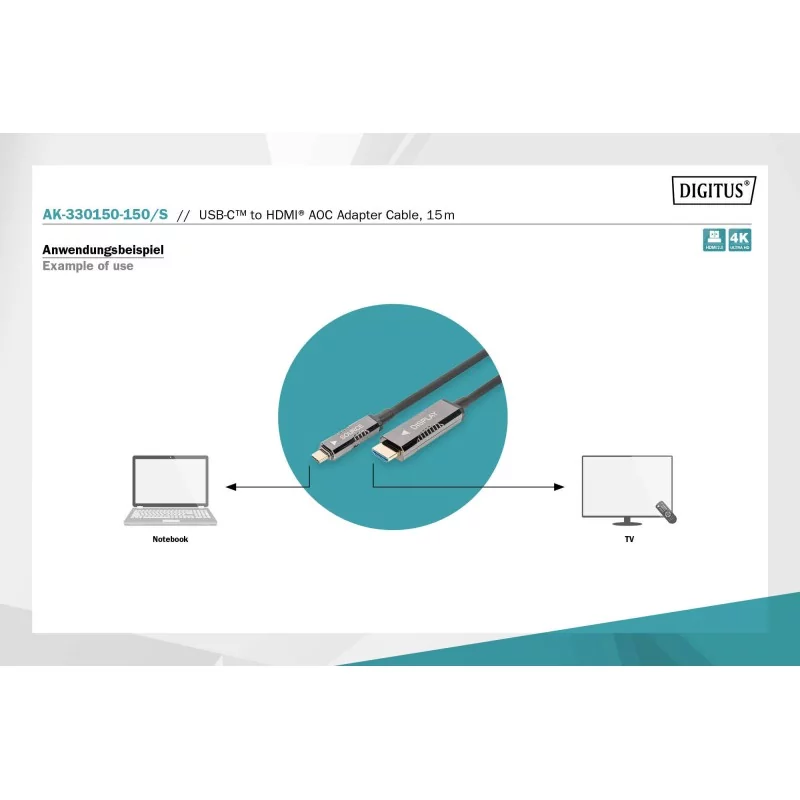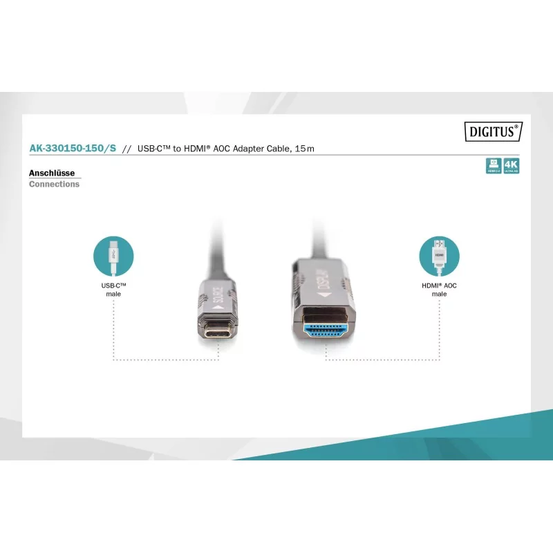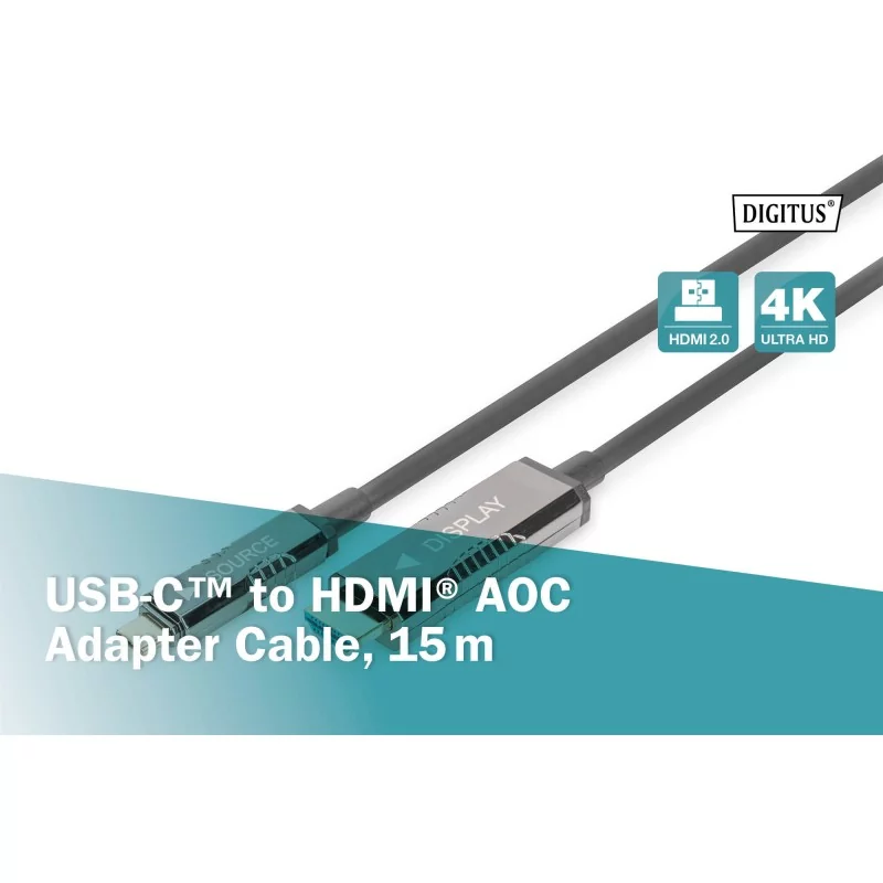 Ten aktywny adapter kablowy typu AOC ze złączem USB Typu C na HDMI jest idealny do przesyłania nieskompresowanego obrazu i dźwięku z dużą przepustowością na większe odległości. Hybrydowa struktura składająca się z przewodów miedzianych i światłowodowych eliminuje zakłócenia elektromagnetyczne, zapewniając bezstratną transmisję na całej długości kabla, z rozdzielczością UHD do 4K / 60 Hz i przepustowością do 18 Gb/s. Ze względu na zastosowanie przewodów optycznych (włókna szklanego) średnica tego aktywnego kabla jest niewielka i charakteryzuje się bardzo małymi promieniami gięcia i niską masą własną. Idealne do użytku w domu, pomieszczeniach przeznaczonych na spotkania biznesowe lub salach konferencyjnych oraz w budynkach, które stanowią tylko niektóre obszary zastosowania. Łatwa instalacja metodą plug and play (podłącz i używaj), od razu po podłączeniu można cieszyć się najwyższą jakością obrazu. Kabel adaptera jest jednokierunkowy (USB typu C = urządzenie wejściowe, HDMI typu A = urządzenie wyjściowe). Obsługiwane są liczne standardy, takie jak np. HDMI 2.0, HDMI 1.4 czy HDR10. Wykorzystanie najnowocześniejszej technologii chipowej umożliwia przesyłanie pełnego zakresu sygnału HDMI® i obsługę CED, EDID z bardzo niskim opóźnieniem i bez kompresji. Rozwiązanie nie wymaga zewnętrznego zasilania. Zgodność ze standardem DisplayPort 1.2 i kompatybilność z trybem DP Alternate Mode w standardzie USB Type-C.