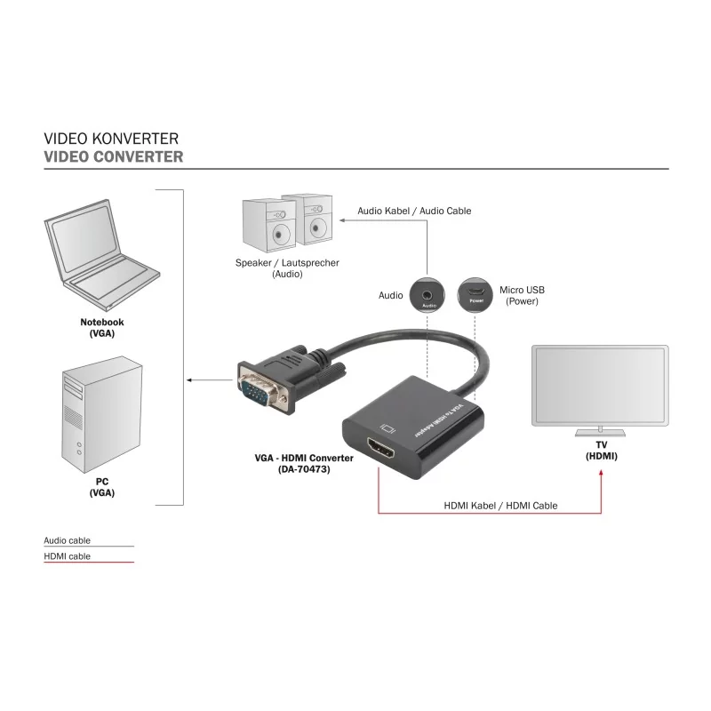 Konwerter/adapter audio-video VGA do HDMI, 1080p FHD, z audio 3.5mm MiniJack DA-70473
