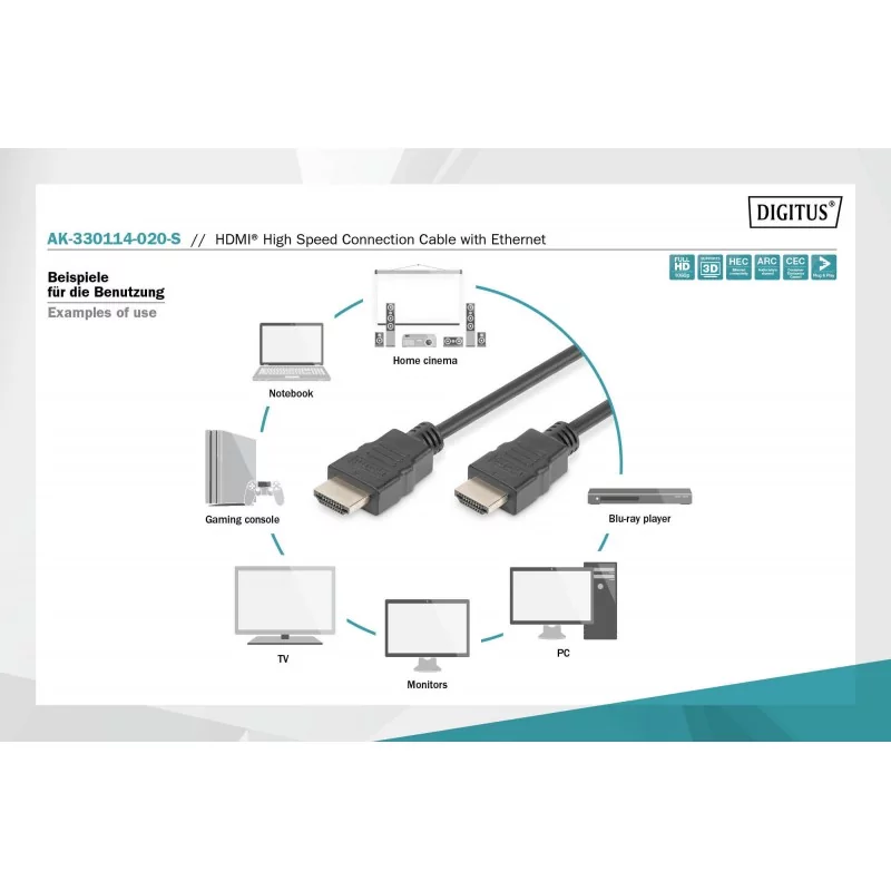 Wspiera najnowszy standard HDMI High Speed z Ethernet zapewniając obsługę rozdzielczości FullHD 1080P, obrazu 3D oraz zwrotnego kanału audio (ARC) i obsługą poleceń (CEC);