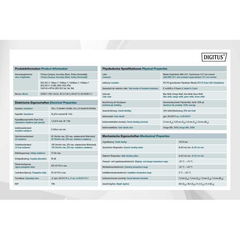 Kabel instalacyjny DIGITUS kat.7, S/FTP, B2ca, AWG 23/1, LSOH, 100m, pomarańczowy DK-1745-VH-1