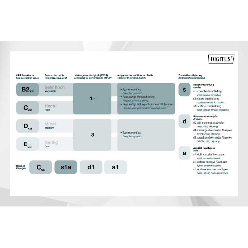 - BauPVO klasa B2ca- (Sprawdź DoP dla dalszej klasyfikacji)