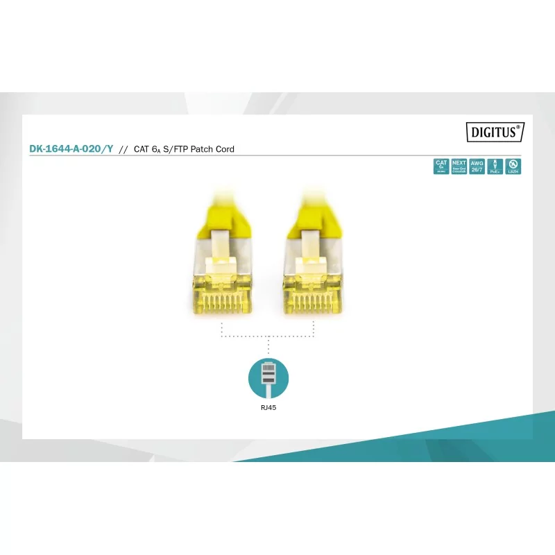 Kabel krosowy (patch cord) RJ45-RJ45, kat.6A, S/FTP, AWG 26/7, LSOH, 2m, żółty DK-1644-A-020/Y