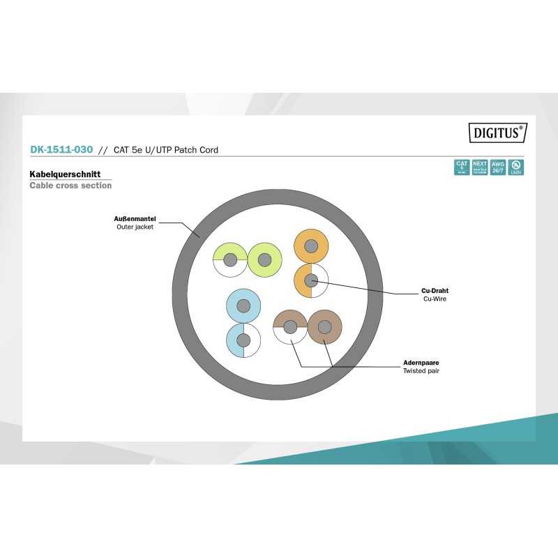 Kabel krosowy (patch cord) RJ45-RJ45, kat.5e, U/UTP, AWG 26/7, PVC, 3m, szary DK-1511-030