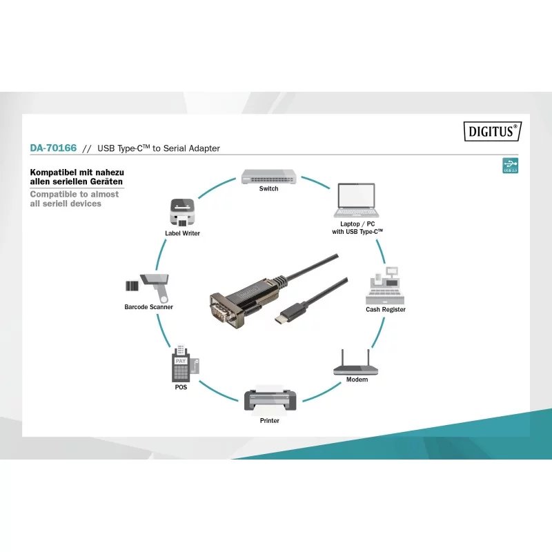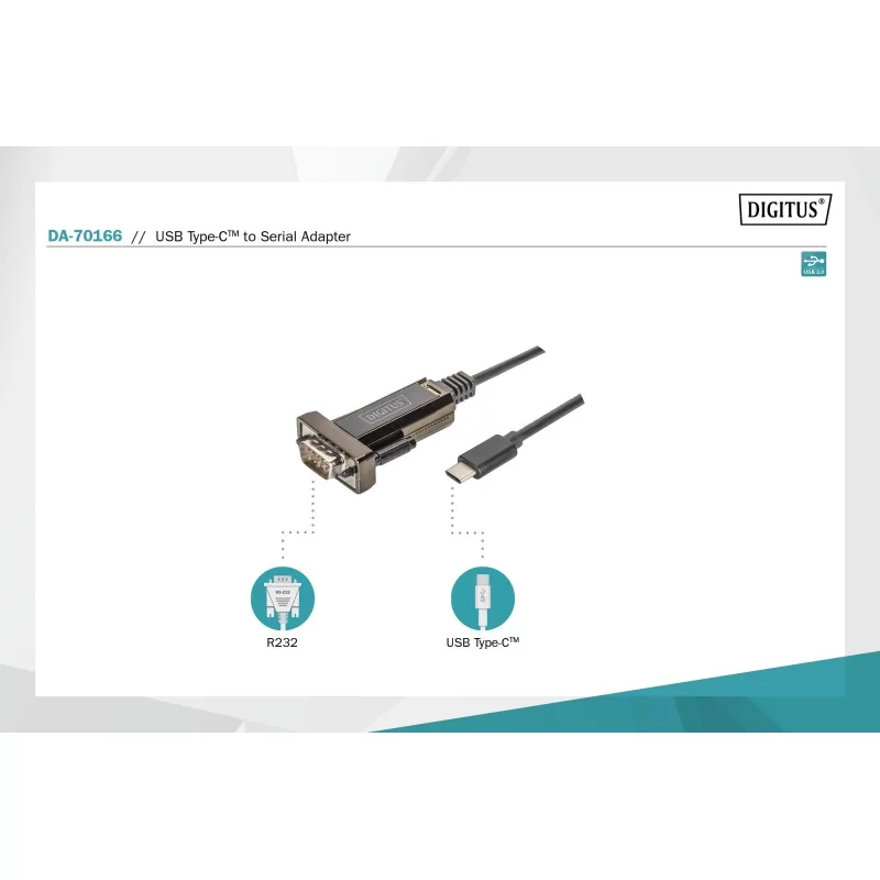 Kabel Adapter USB 2.0 HighSpeed Typ USB C/RS232 M/Ż czarny 1m DA-70166