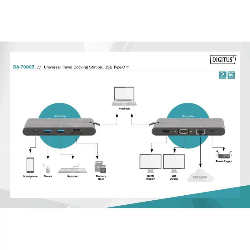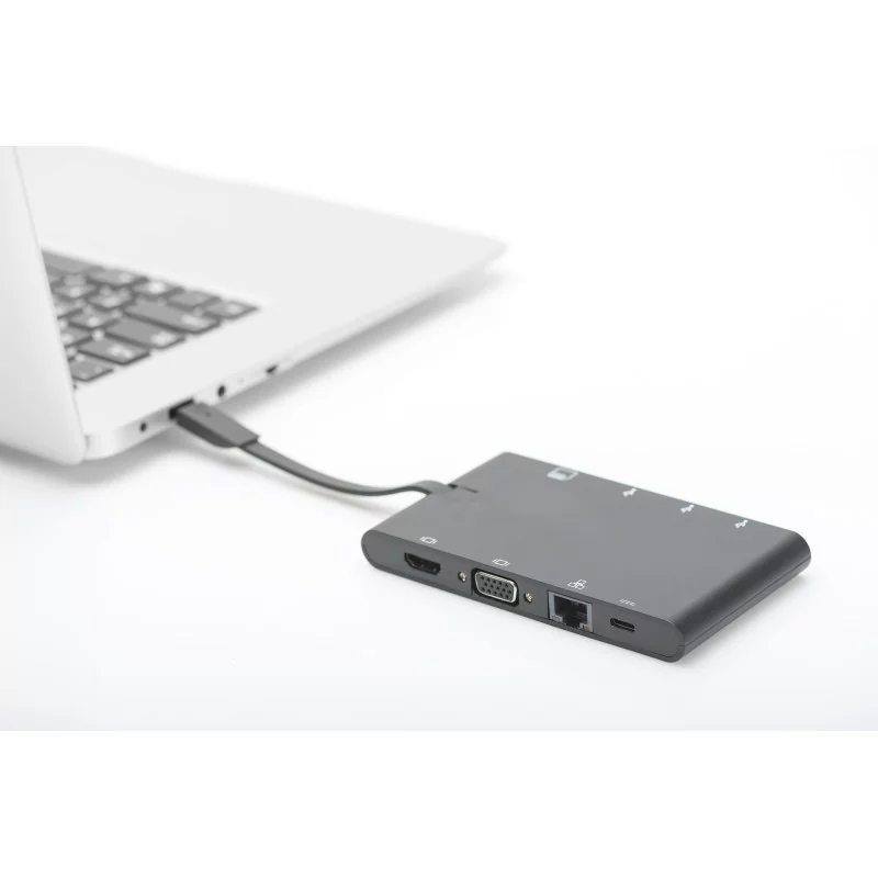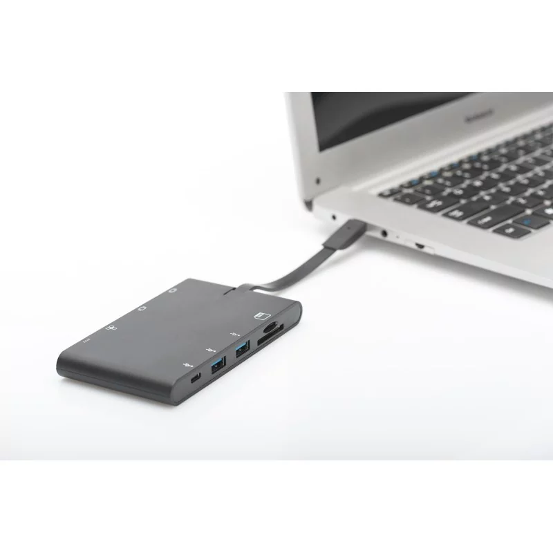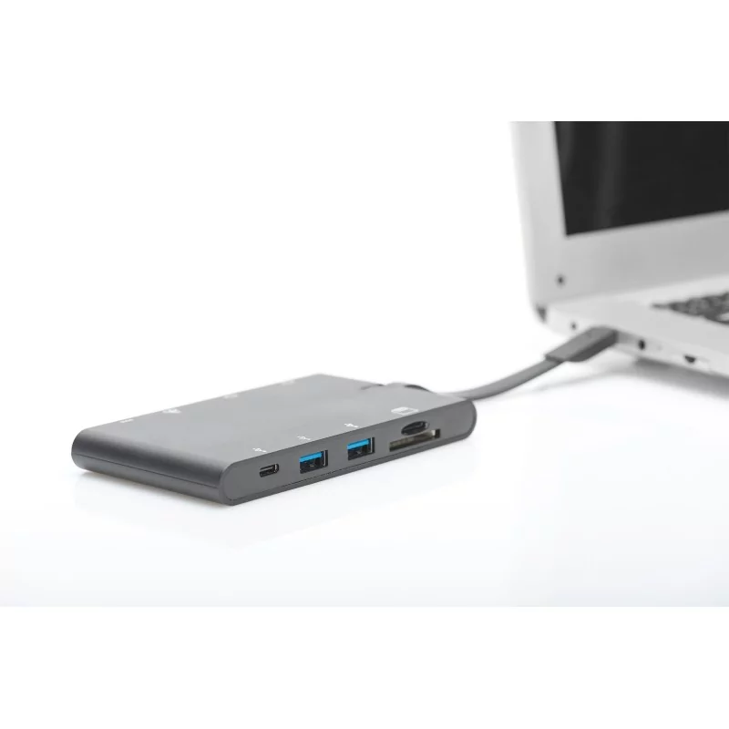 Stacja dokująca podróżna USB Typ C, 9 portów, funkcja Dual Monitor, 4K 30Hz, czarna DA-70865