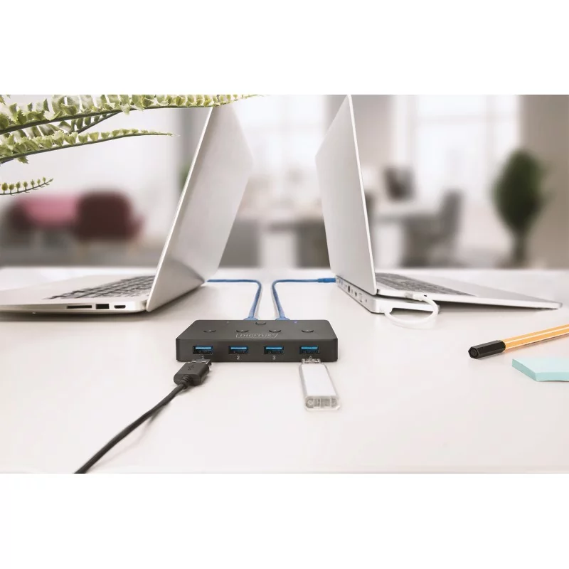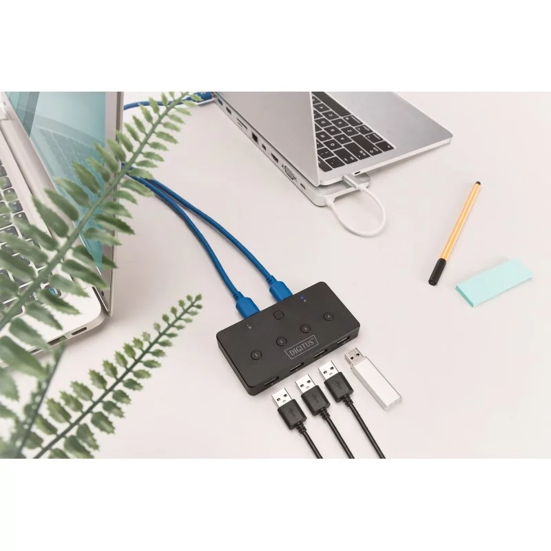 Za pomocą Przełącznik udostępniania USB 3.0 4 w 2 można podłączyć maks. 4 zewnętrzne urządzenia USB do 2 notebooków / komputerów stacjonarnych.