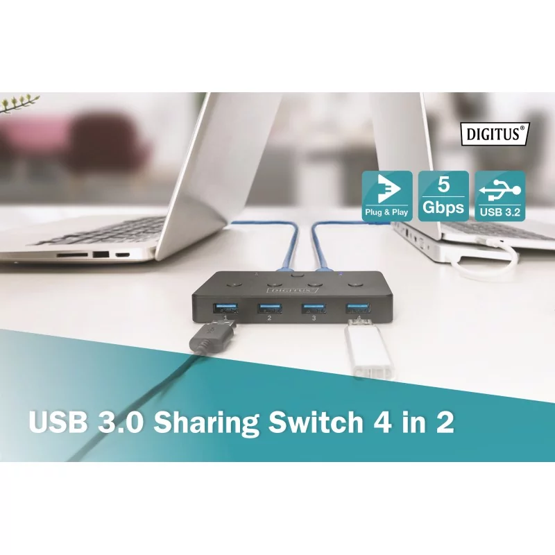 - Przełącznik USB 3.0 jest idealny do udostępniania drukarki, skanera lub dysków w niewielkim biurze.
