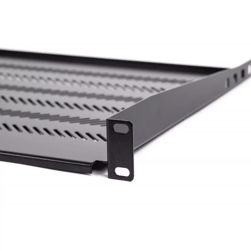 Półka przeznaczona do szaf teleinformatycznych typu rack 19", montowana na czterech (4) belkach nośnych. Pozwala na umieszczenie w szafce dokumentacji lub sprzętu typu "desktop", który nie posiada uchwytów montażowych.