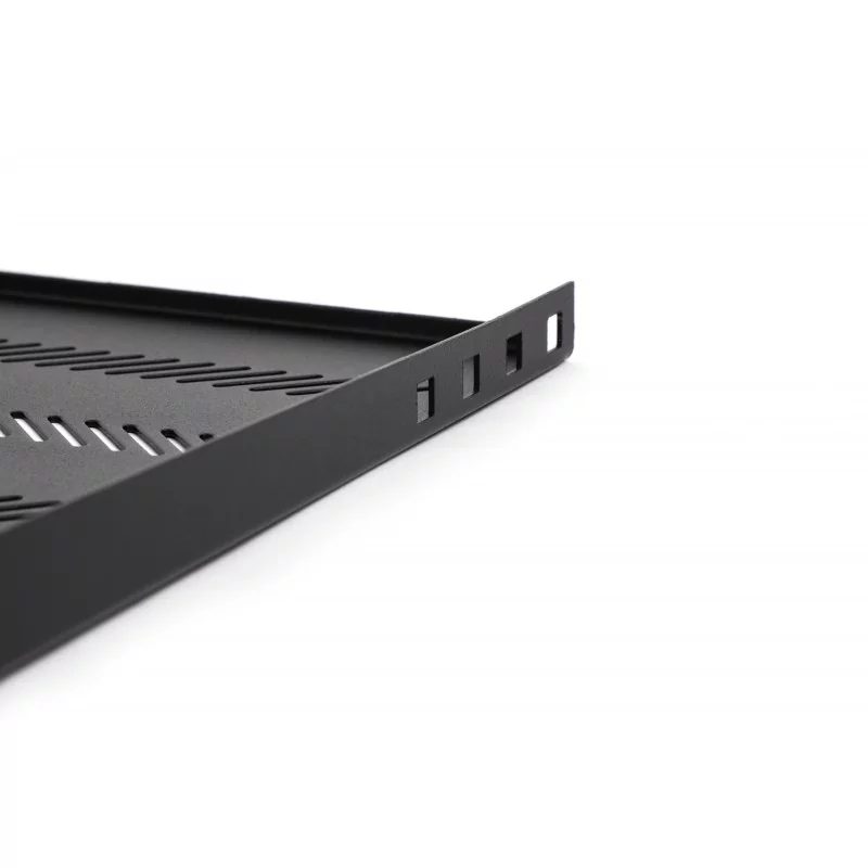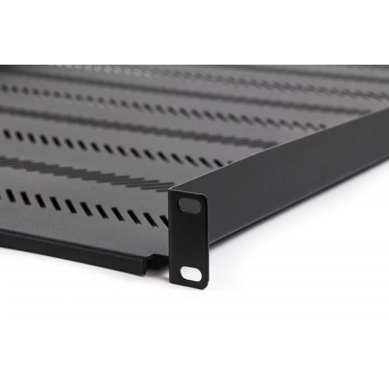 Półka przeznaczona do szaf teleinformatycznych typu rack 19", montowana na czterech (4) belkach nośnych. Pozwala na umieszczenie w szafce dokumentacji lub sprzętu typu "desktop", który nie posiada uchwytów montażowych.
