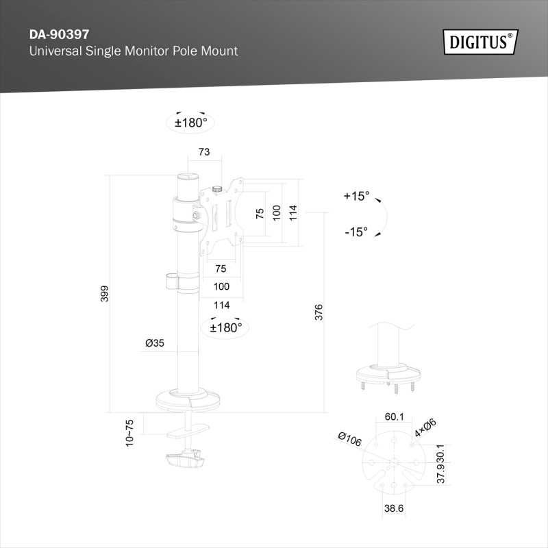- Na monitory od 15" do 32" (VESA 75/100), maks. ciężar całkowity 8 kg (na monitor)