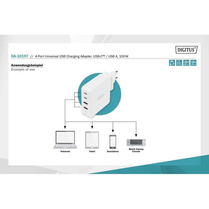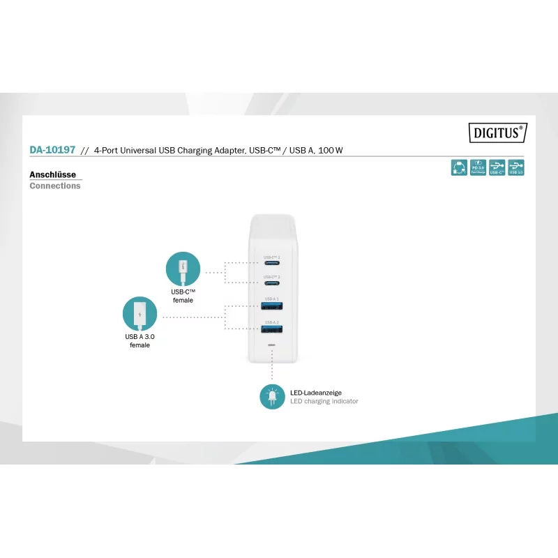 Uniwersalna ładowarka do urządzeń ze złączem USB-C™ i USB A o łącznej mocy maksymalnie 100 W (PD 3.0)